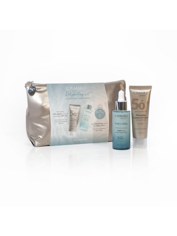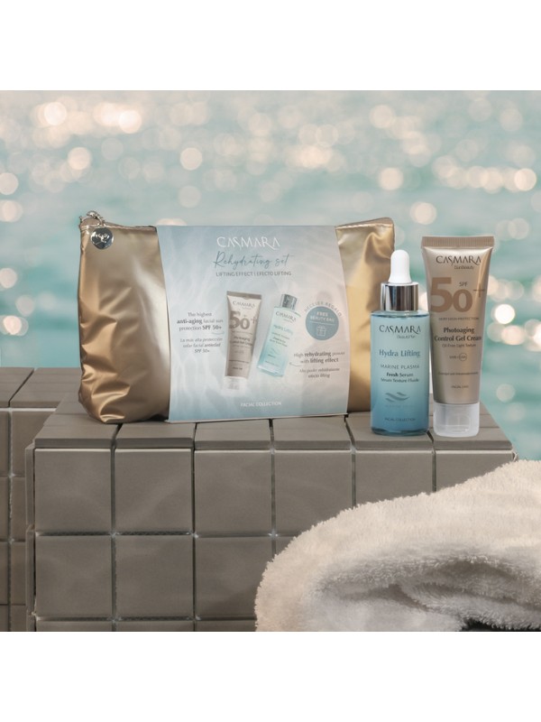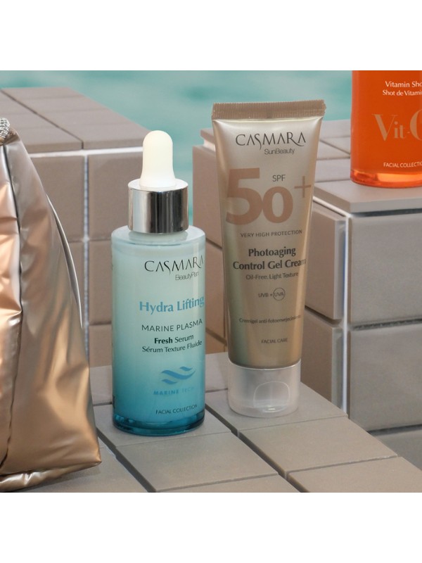 El Set de belleza Hidratante de Verano es la combinación perfecta para lucir una piel firme, rejuvenecida y protegida este verano. Incluye Marine Plasma Fresh Serum, un sérum de efecto lifting formulado con ingredientes marinos que hidrata intensamente y mejora la firmeza de tu piel, y Photoaging Control Gel Cream SPF50, tu escudo diario frente al fotoenvejecimiento.